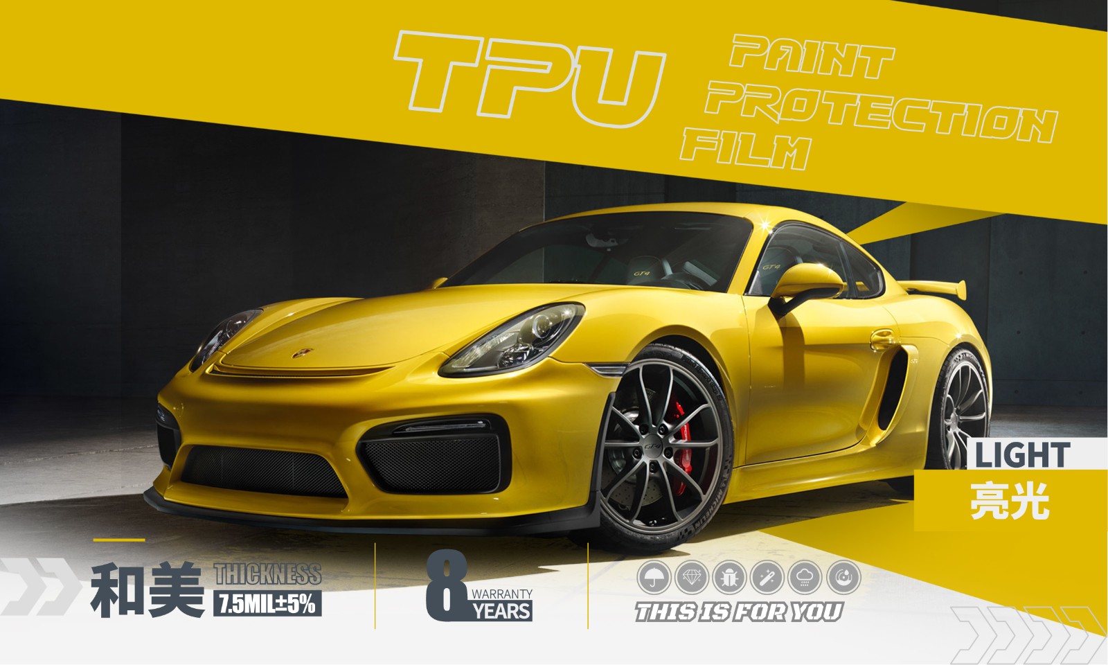 和膜和彩漆面保护膜系列产品采用TPU材质,其全系列产品具备多特点:
